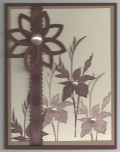 - I stamped the flower from the Fabulous Florets stamp set in Chocolate Chip on Very Vanilla card stock and then stamped off the next images.