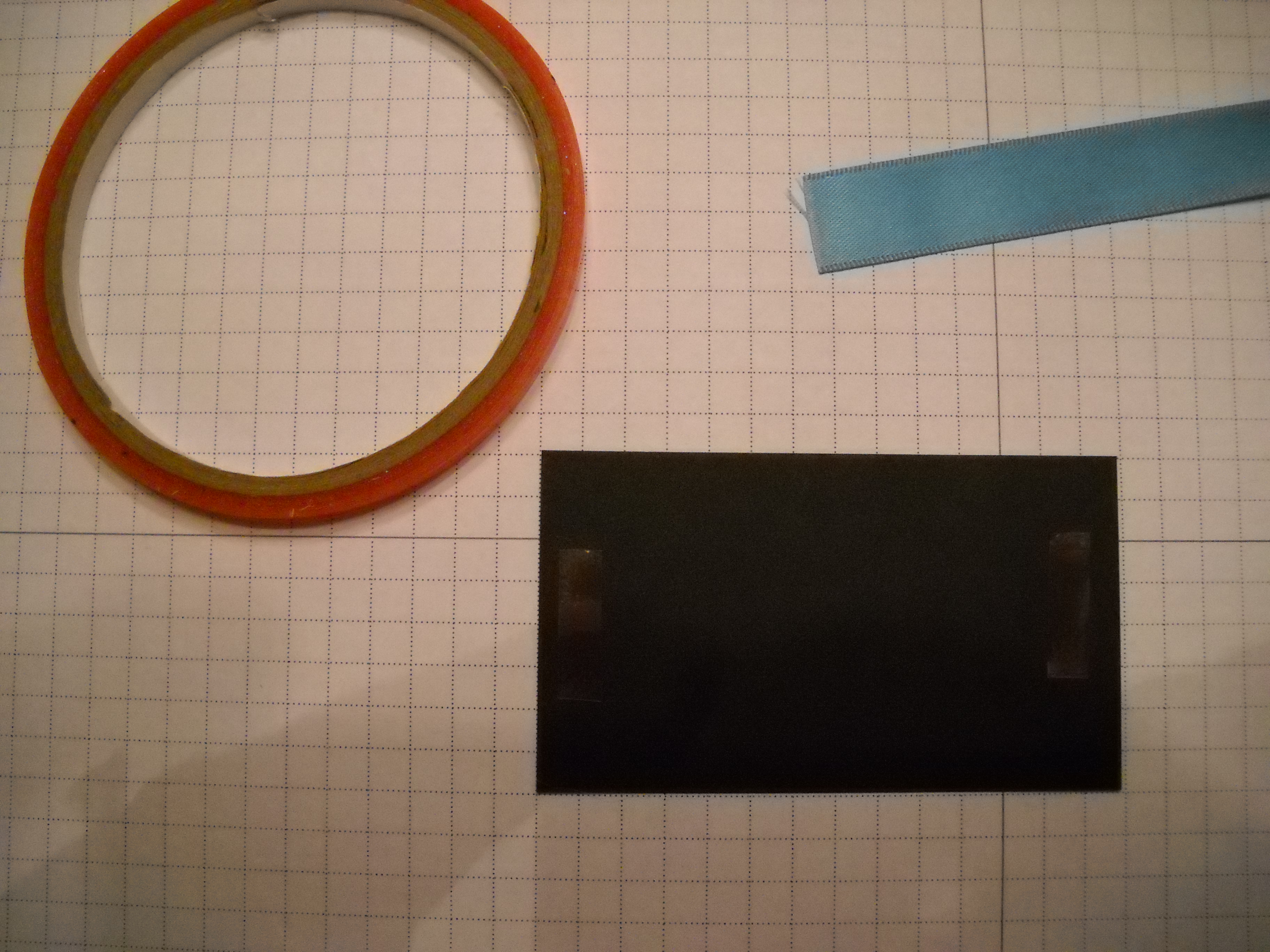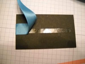 - I’m just using this black card stock and Marina Mist ribbon as a sample. Start by just placing two strips of Sticky Strip on the back side of the card stock. This will hold the ends of your ribbon.