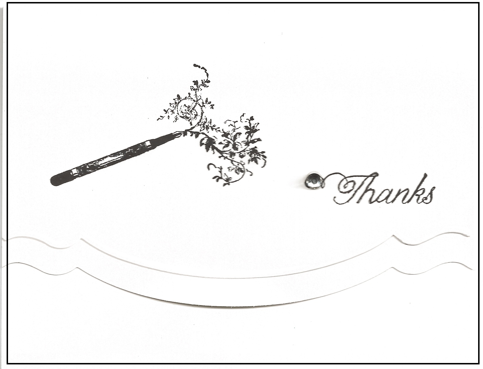 - Out comes the Basic Black Classic ink pad and a quick stamp of “Thanks” and the fountain pen.