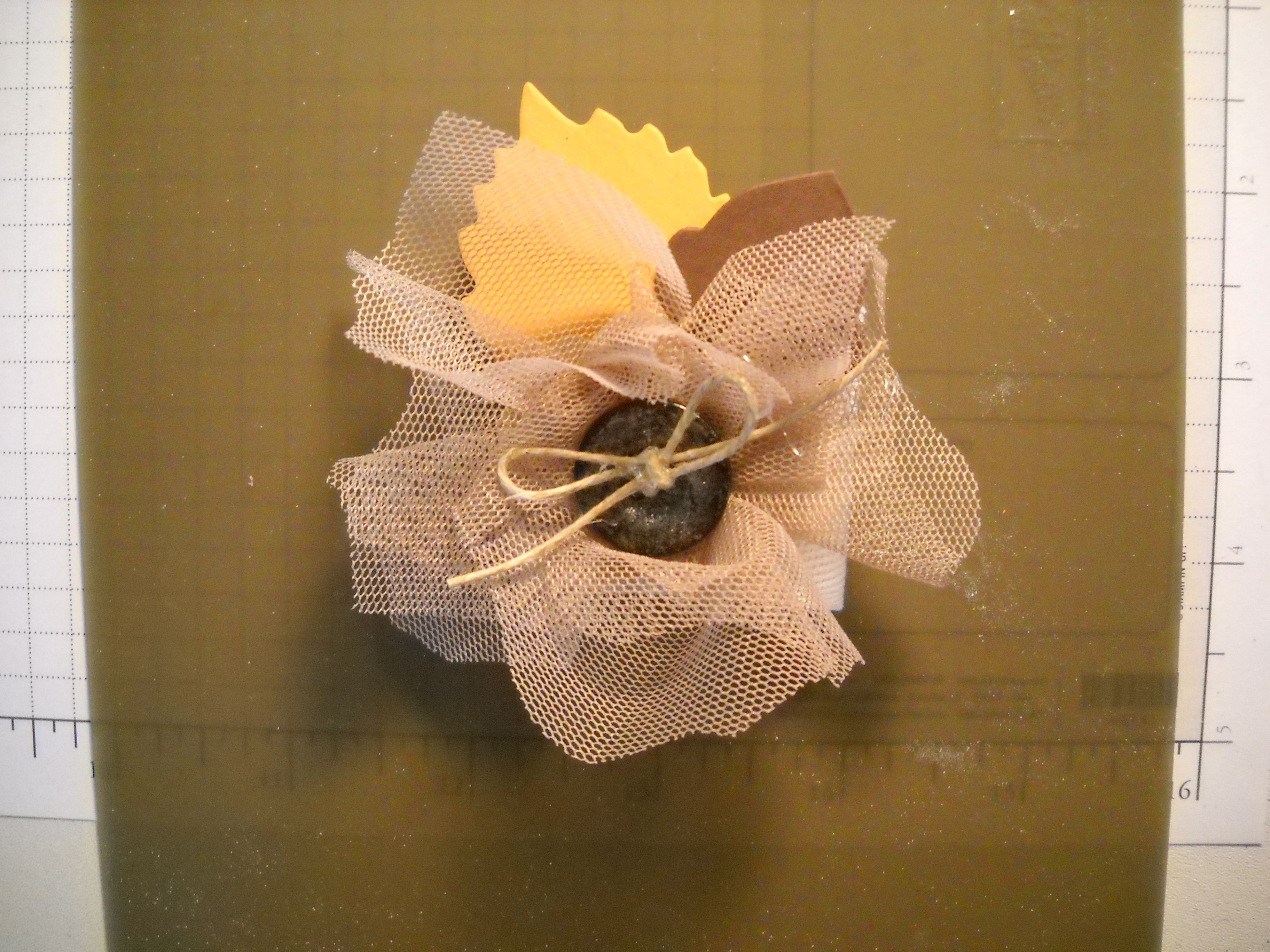 I tied a bow through my button using some retired Natural Twine, but our Linen Thread will work just as well. I then glued the button to my tulle.