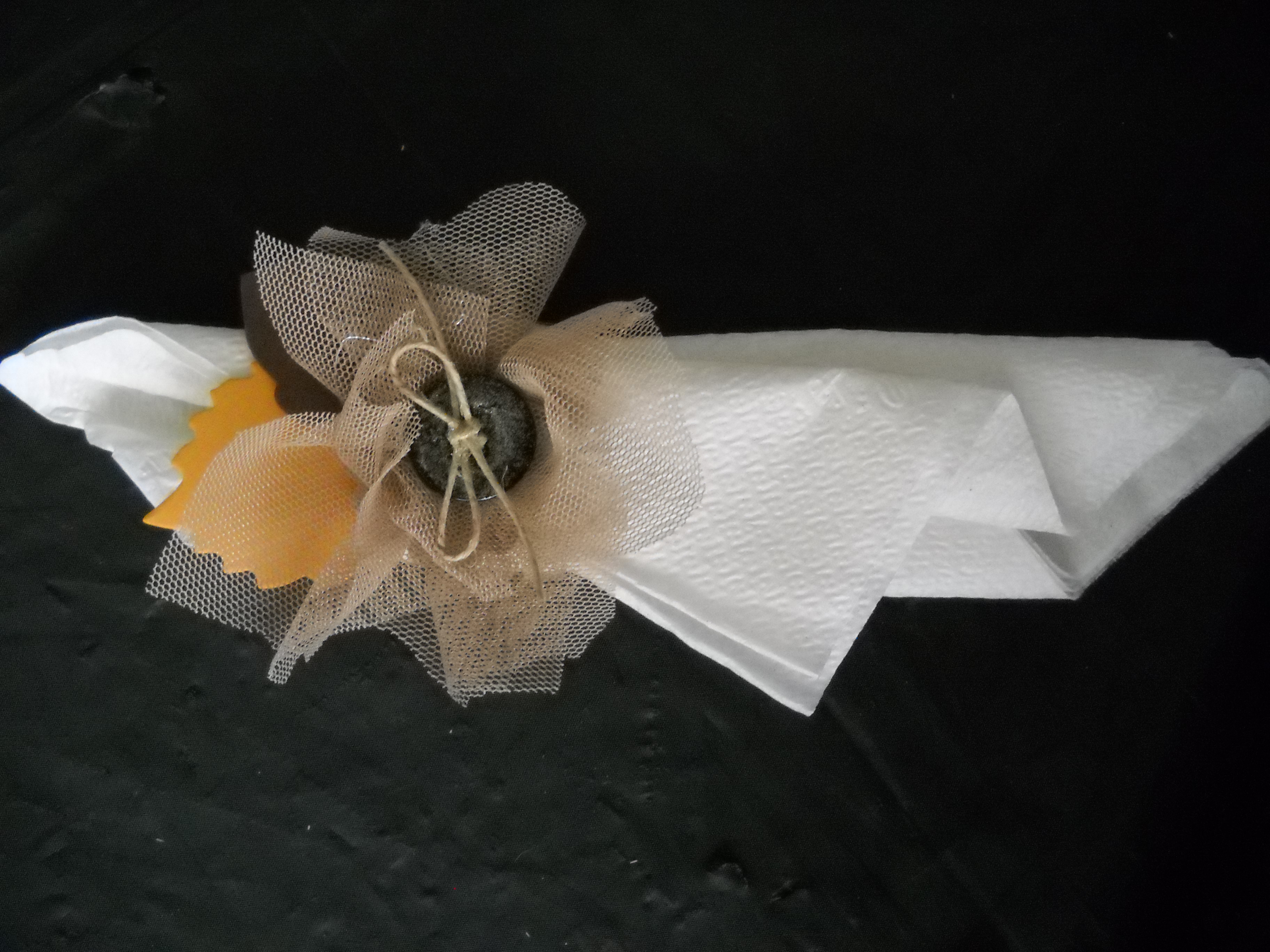 I made my actual napkin rings using some retired Twill Tape, but any piece of wide ribbon or even burlap will work for the rings. The Twill Tape was a 4″ piece, which the ends were simply glued to make a ring. Your seam will be hidden when you attach your tulle piece.