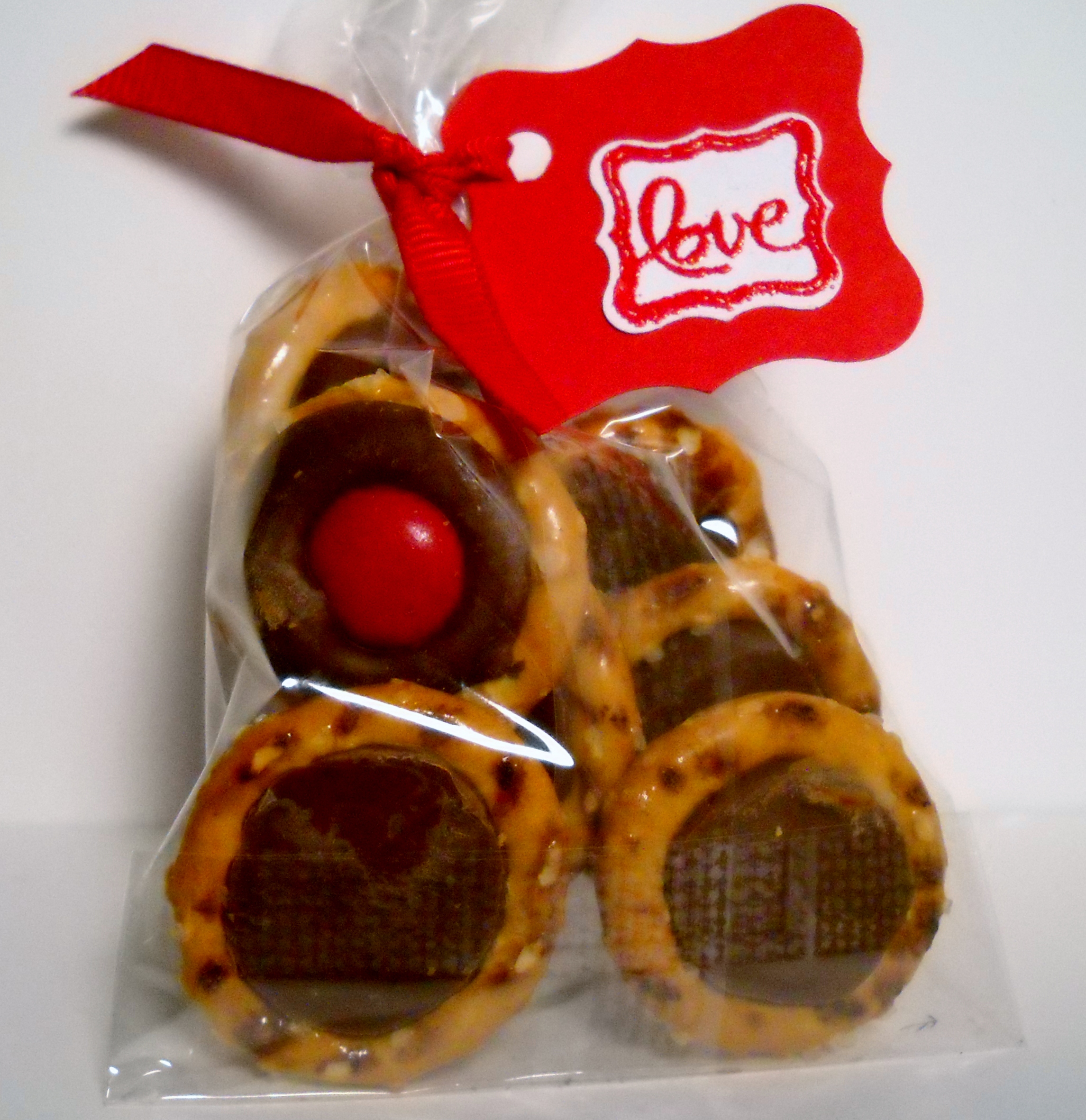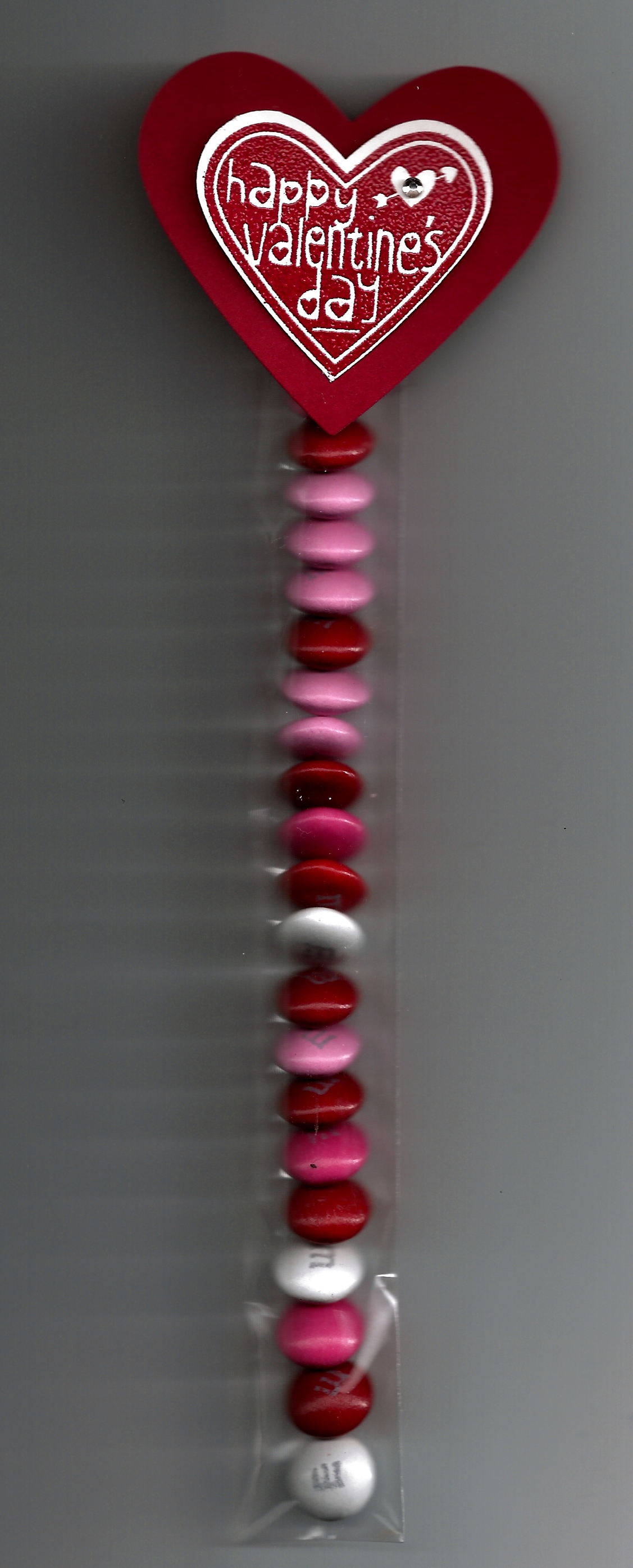 With Valentine’s Day right around the corner, I’ve been busy making up little packets of goodies for neighbors and friends. You’ve seen my M&Ms in the 1″ x 8″ cellophane bags.