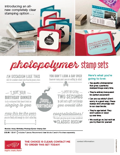 Stampin’ Up! has a new photopolymer stamp set. These stamp sets are being offered on a trial basis and are available only while supplies last.