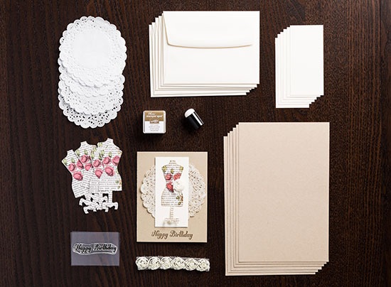 Stampin’ Up! is excited to introduce our second Submit a Project kit–the Dolled-Up Birthday Kit–voted on by you via our Facebook page. This gorgeous birthday card was created by Chris Gilmore, a manager from Coshocton, Ohio. Congratulations, Chris!