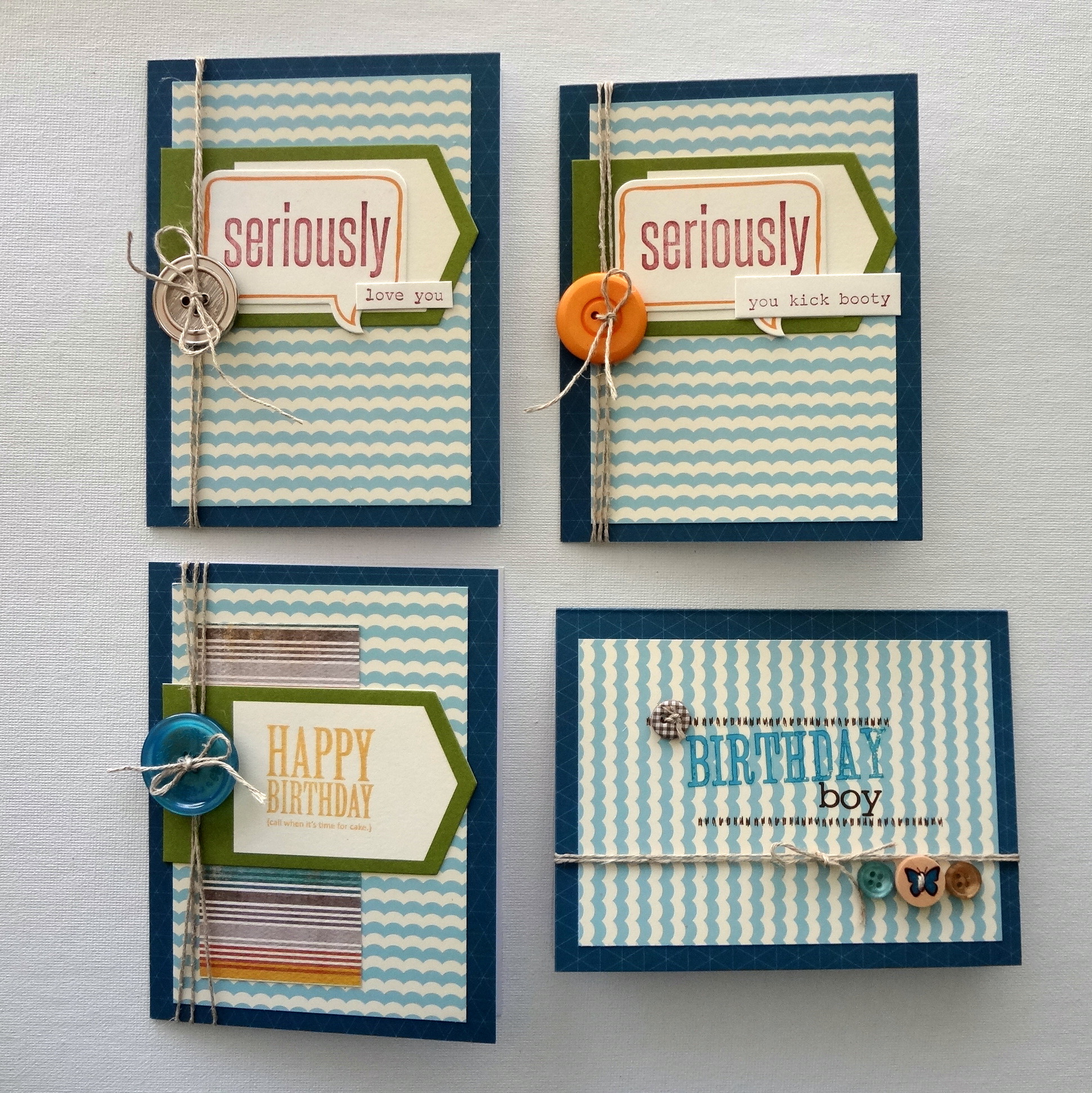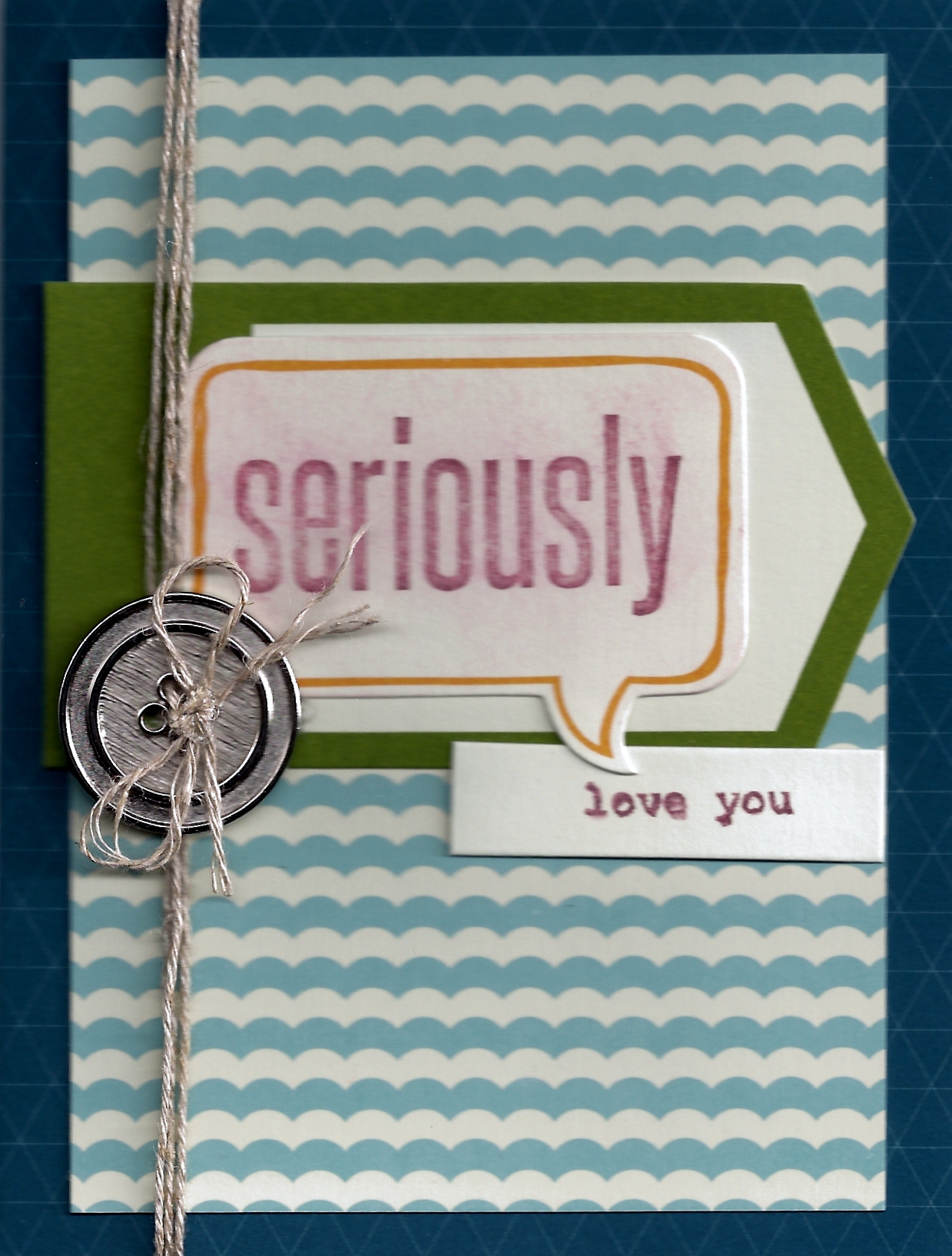 The stamps in the kit were “seriously”, “love your guts”, and “you kick booty”! I loved the “seriously” stamp, but the other two really aren’t my style. I took my marker and just marked the “love you” on the “love your guts” stamp. Worked out great. Then I took my Teeny Tiny Wishes stamp set and used it on the other cards in the kit for the sentiments.