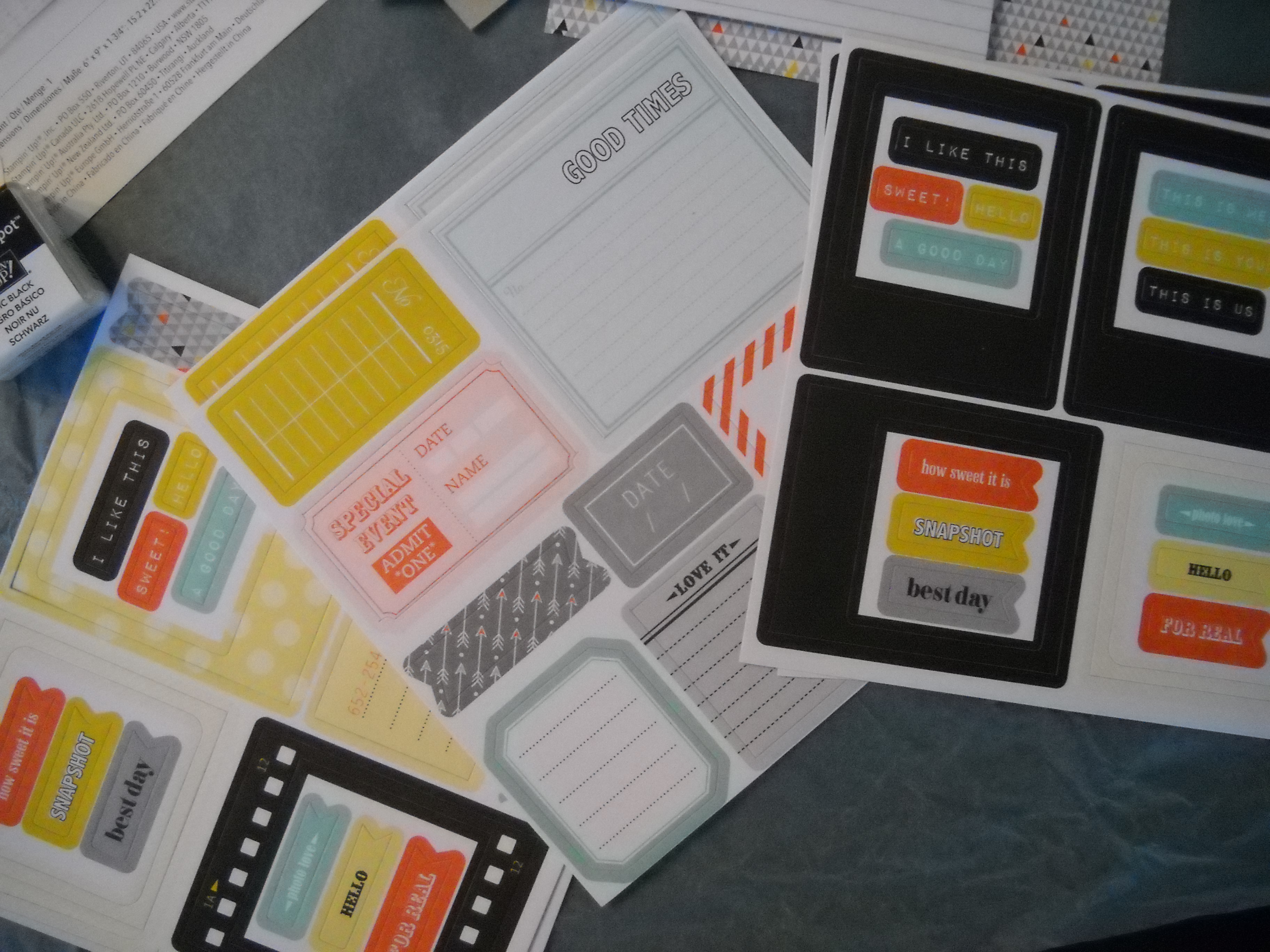 And here is a closeup of some of the items. This will make a great little quick keepsake, and I will definitely be using the additional stickers in my other scrapbooking projects.
