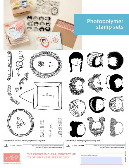 Stampin’ Up! has 2 new Photopolymer Stamp Sets for you: Sweetie Pie and Sweetie Pie Frames.