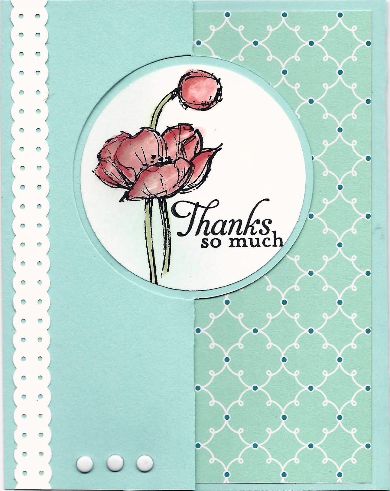 I have a little game going on with my local customers to see who can guess which stamp sets will be retiring. The person with the most correct guesses will win the hostess stamp set “Simply Sketched”. Here is a card I made with this set using the Circle Card Thinlits Die.