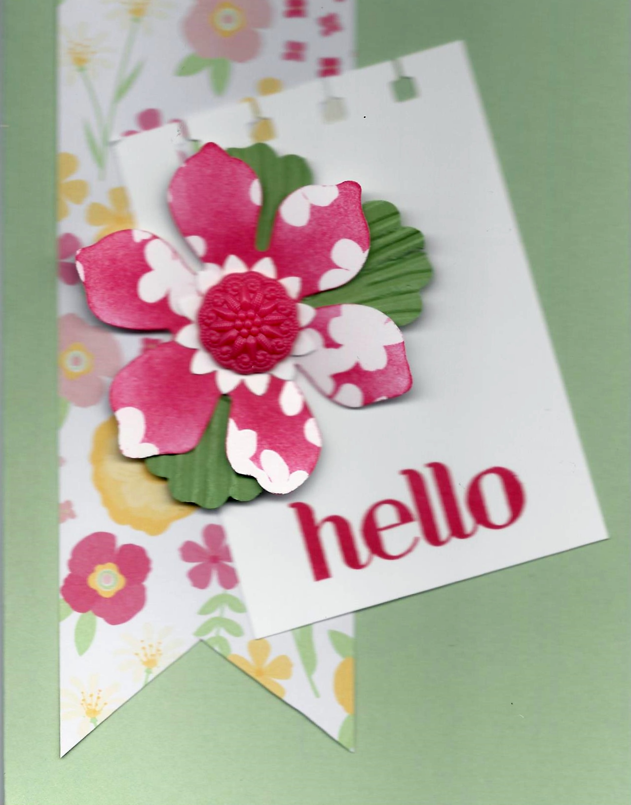 - The flower is punched using the Fun Flower Punch and the Irresistibly Yours paper, using the Strawberry Slush ink to bring out the embossed portion of the paper
