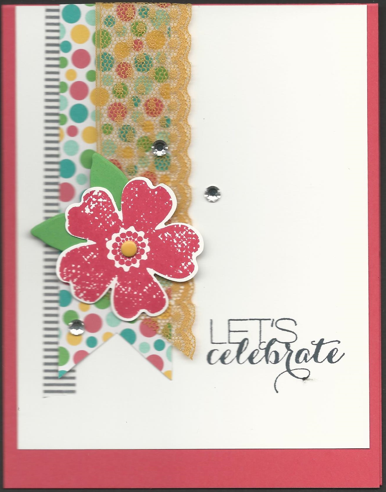 I challenged myself to use the new In Color Watermelon Wonder in a card design. I saw a sample of a card in our demonstrator magazine that I used as a template to create this card.