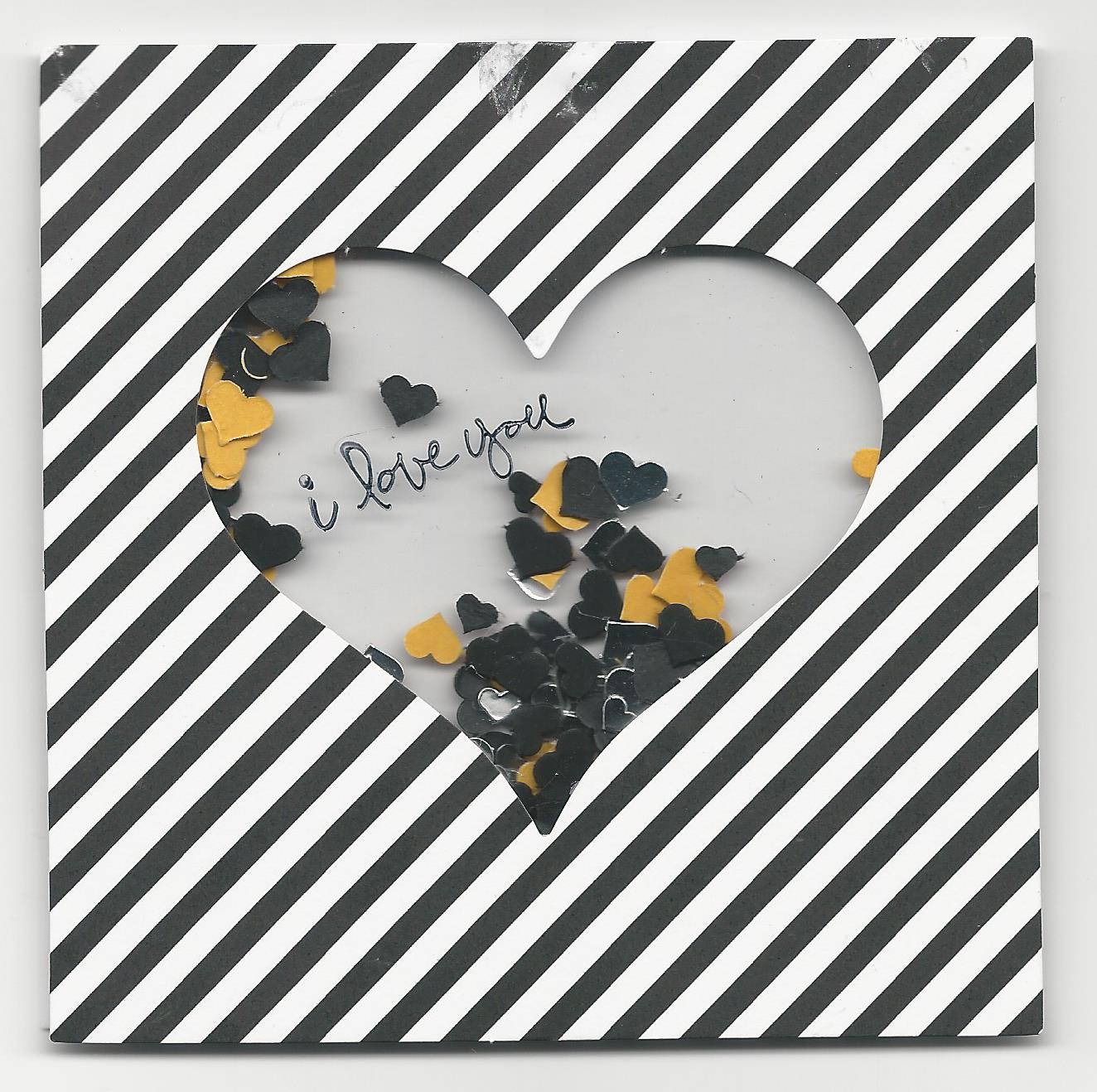 The Confetti Hearts Punch and the Metallic Sequins are great for making shaker cards. Here is a shaker note card I made using the Hello Life Project Kit.