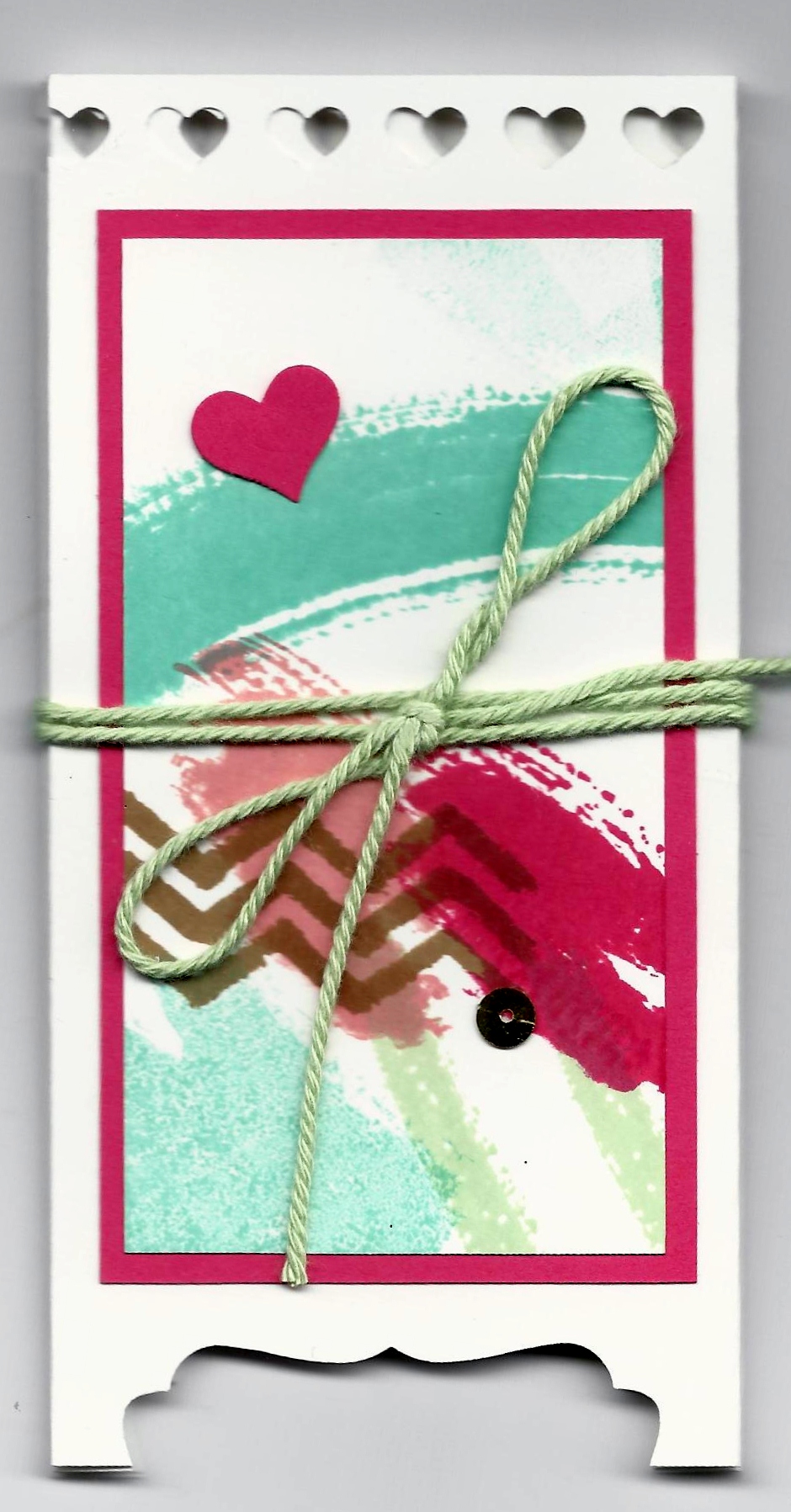 I love the Hearts Border Punch. Here we used it at the top of this four-paneled folding card.