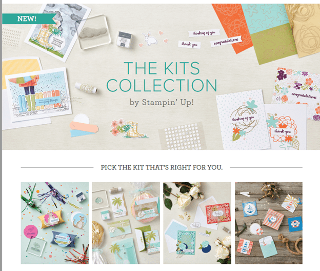 The Kits Collection from Stampin’ Up! went live yesterday. You have a choice of any and all 10 kits available. These can only be ordered online. The idea behind this was to help new or beginner stampers a way to ease into stamping with having everything available to them in a kit, step-by-step instructions, precut pieces and more, except for scissors. Of course, those of us with more experience can also take advantage of these kits when we just need something to get our mojo going or want to take a quick project with us if we’re going to a craft club or crop.