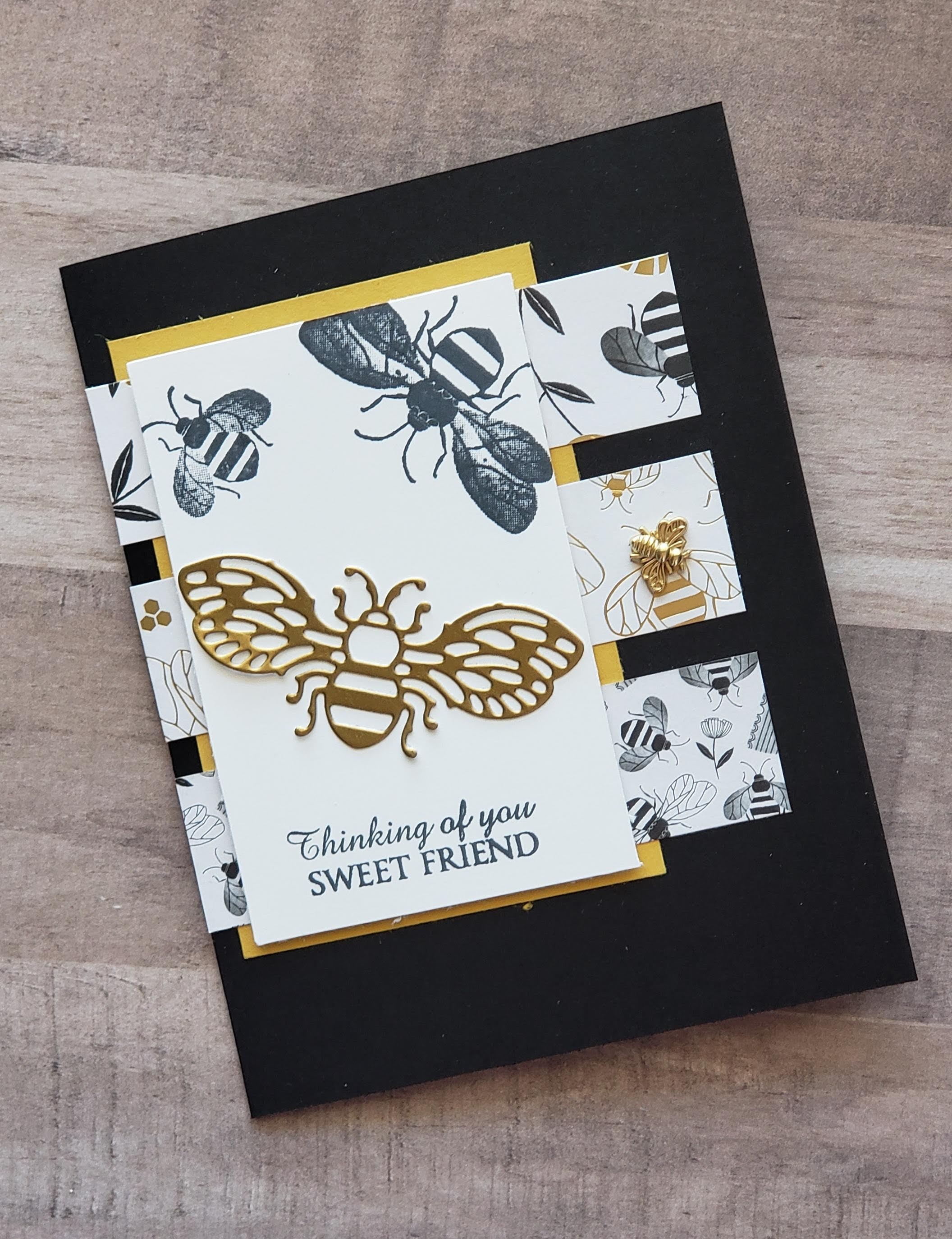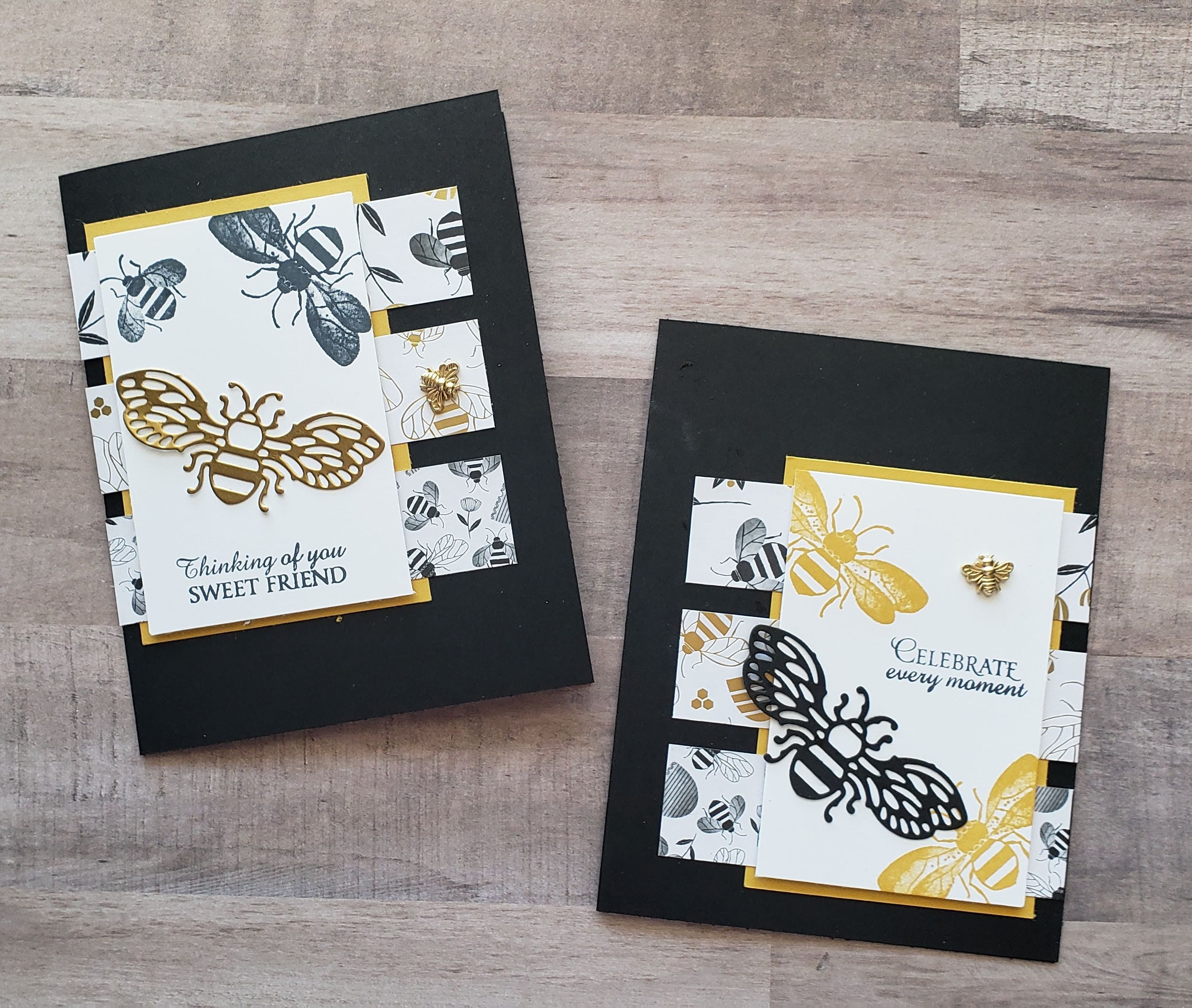 You’ve heard enough of me saying I’m working on using my stash and retired product. Well, the Honey Bee stamp set and Detailed Bee dies, along with the Golden Honey Specialty Paper, definitely qualifies. I’ll start with these two cards and I’m sure you’ll see a few more using some of the other stamps in this set in the future.