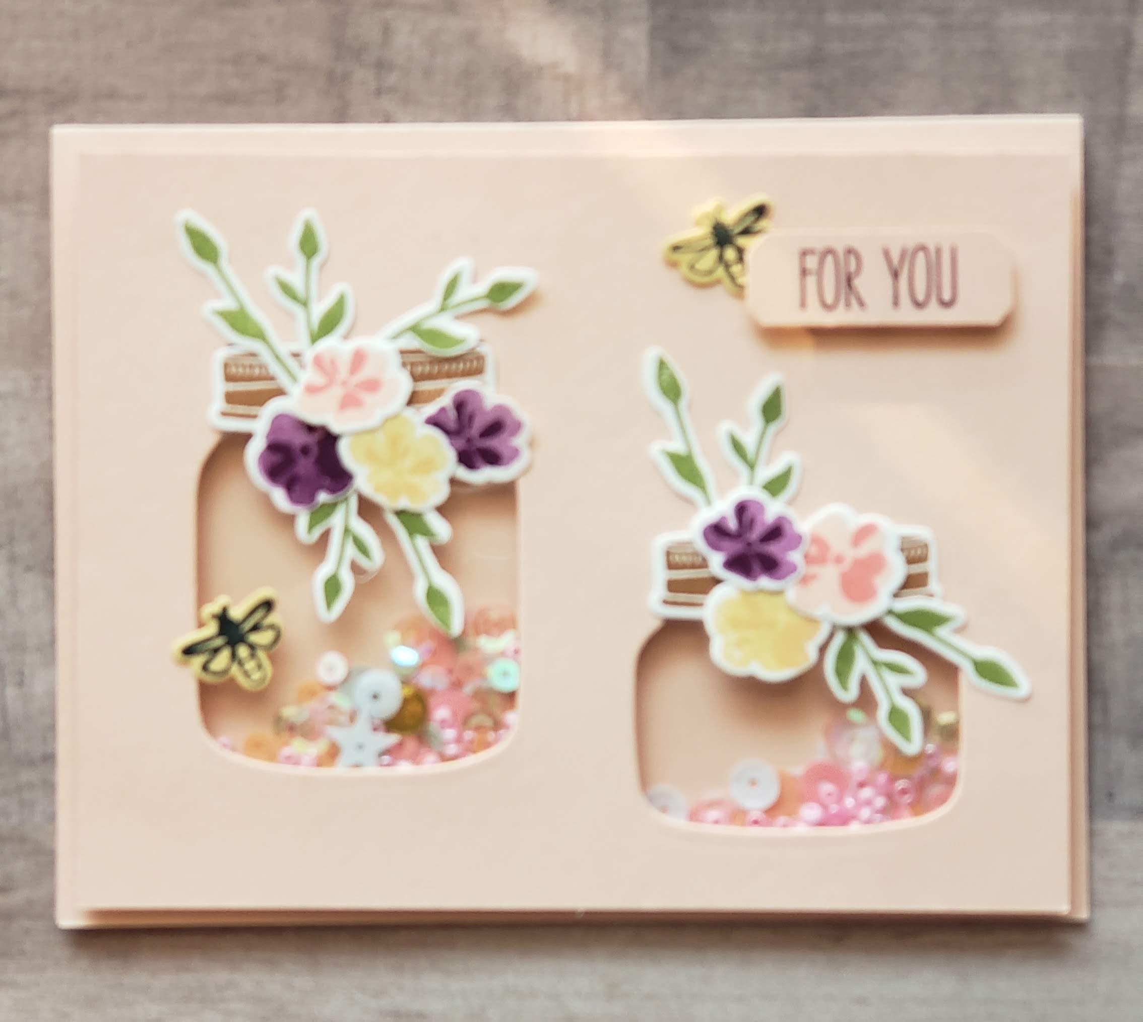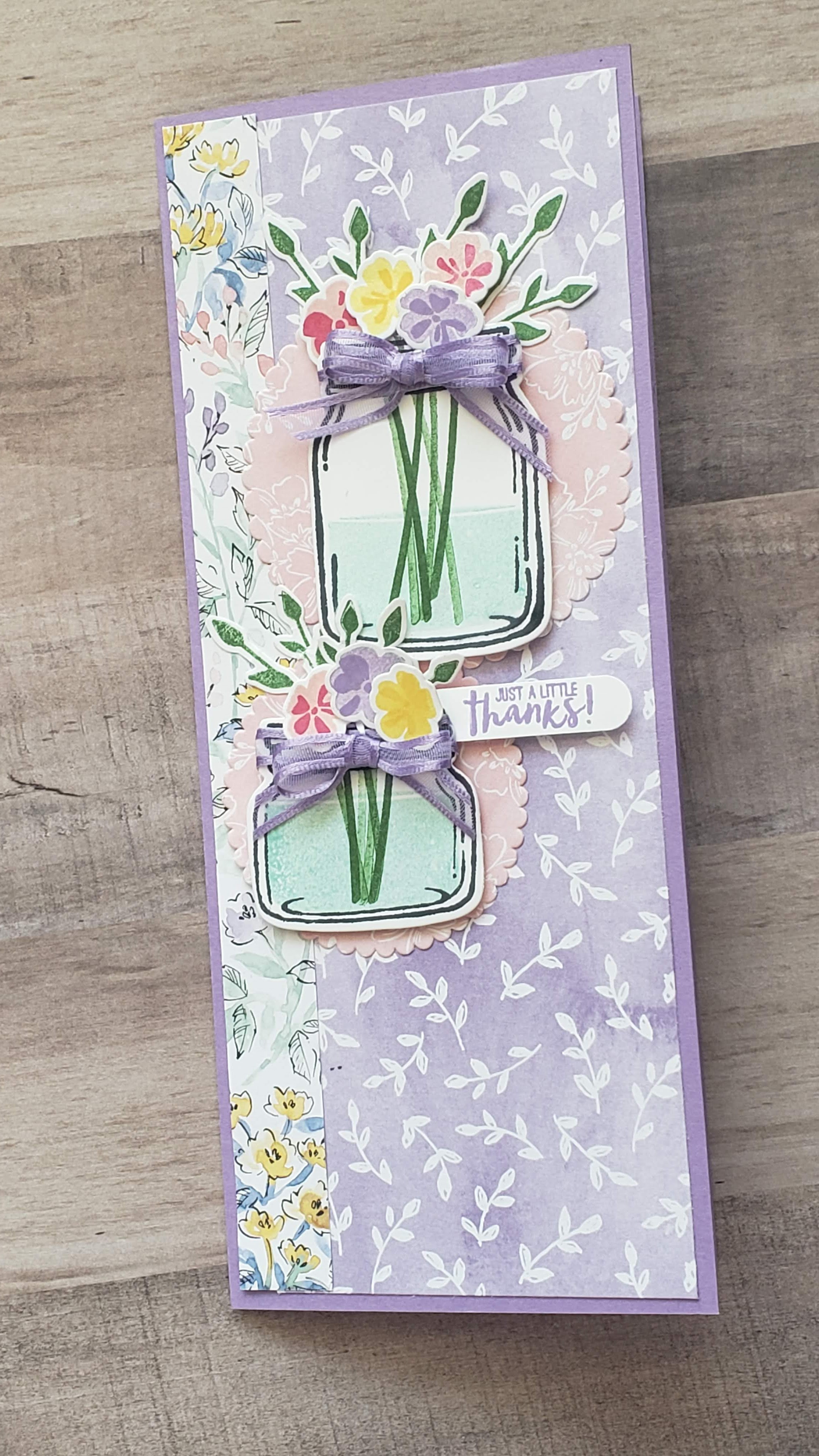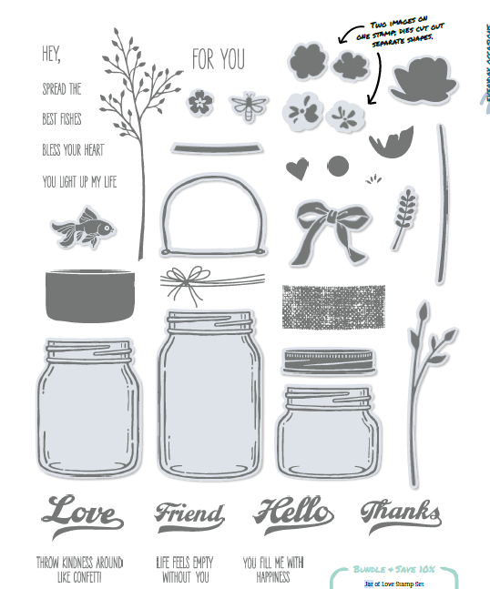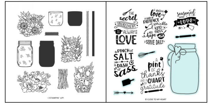 Unfortunately, I do not own the Jar of Flowers stamp set, but I do have the retired Jar of Love set that is shown above. This set came out in 2016 and I, regretfully, have only used it once since I bought it. Ugggg! Once again, why not? This has been a totally fun set to use for this challenge. It has coordinating dies which I utilized in making my cards.