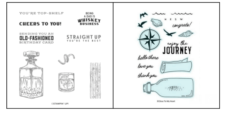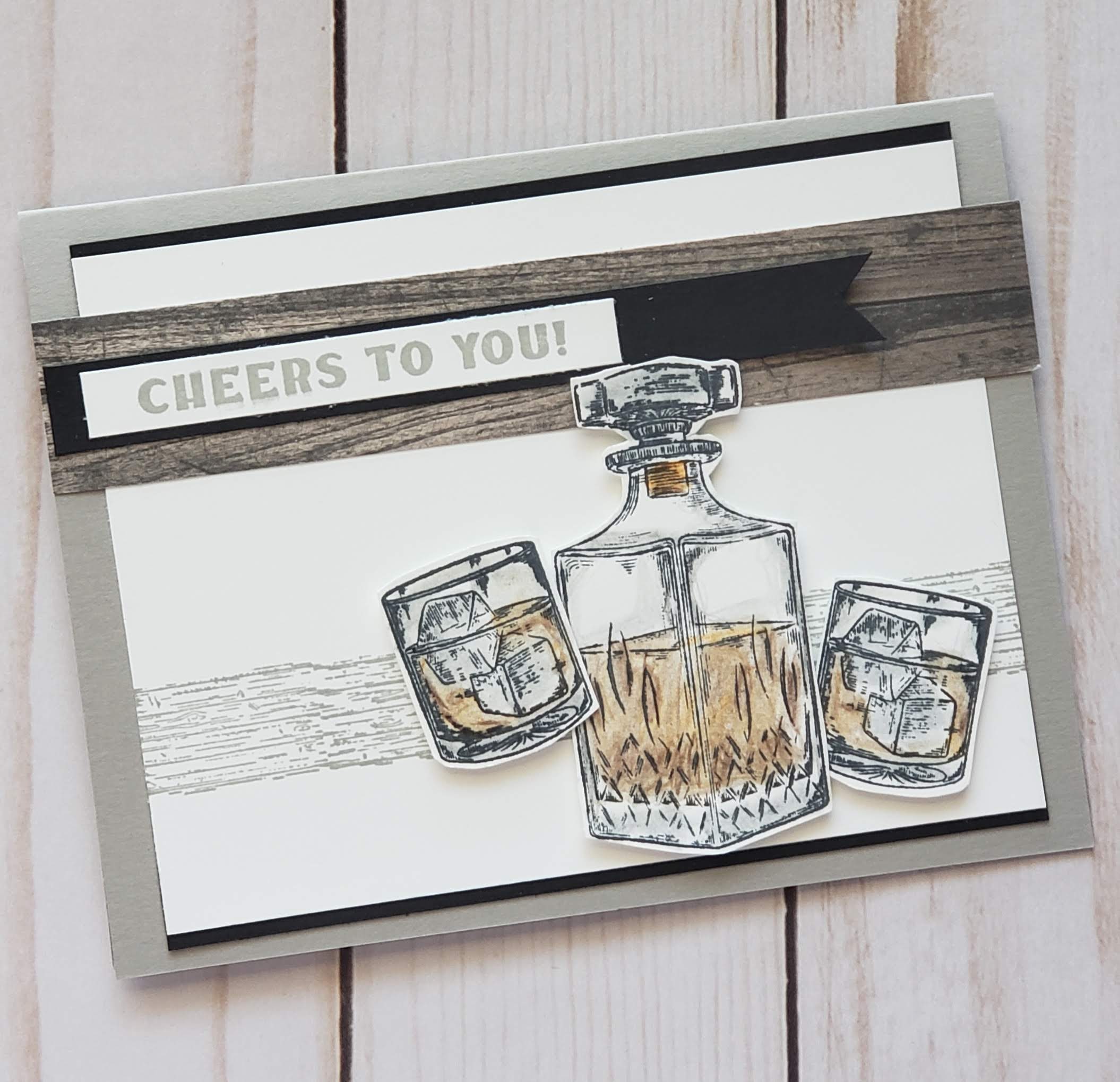Well, this is the last week of the card challenge between myself and my sis-in-law, Susanne, that consultant for the “other” stamping company. Make sure to check out her blog to see what she created with her chosen stamp set. The Stampin’ Up! set I worked with is pictured on the left, Whiskey Business.