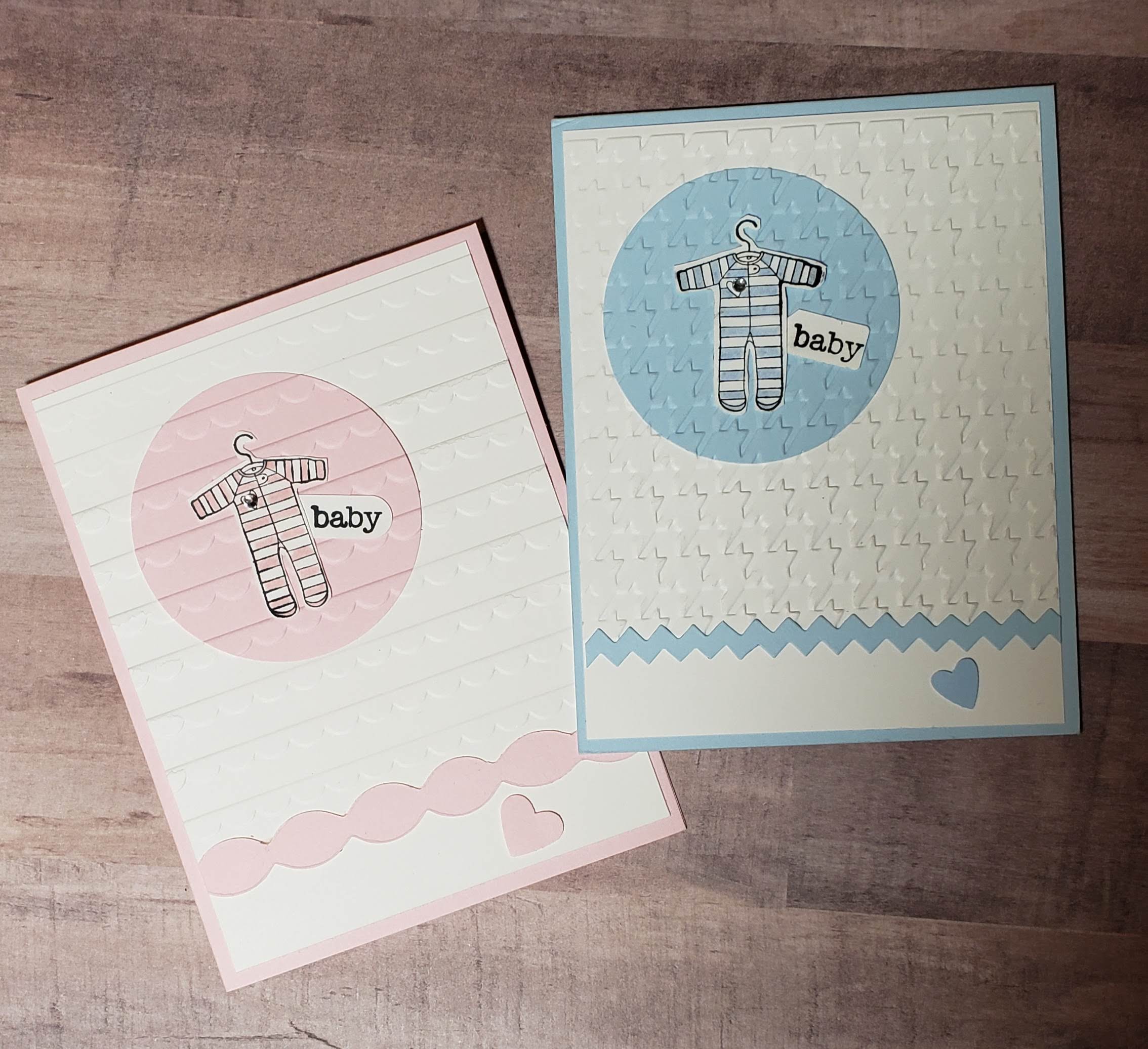 I was adding some cards I had made to one of my boxes and happened to see the category of “Baby” in my box. Well, my need for baby cards isn’t really something on my priority list right now, but the card in the box was for a boy. I couldn’t let the girls be unrepresented, so I took the same template and made one for the sugar and spice gals.