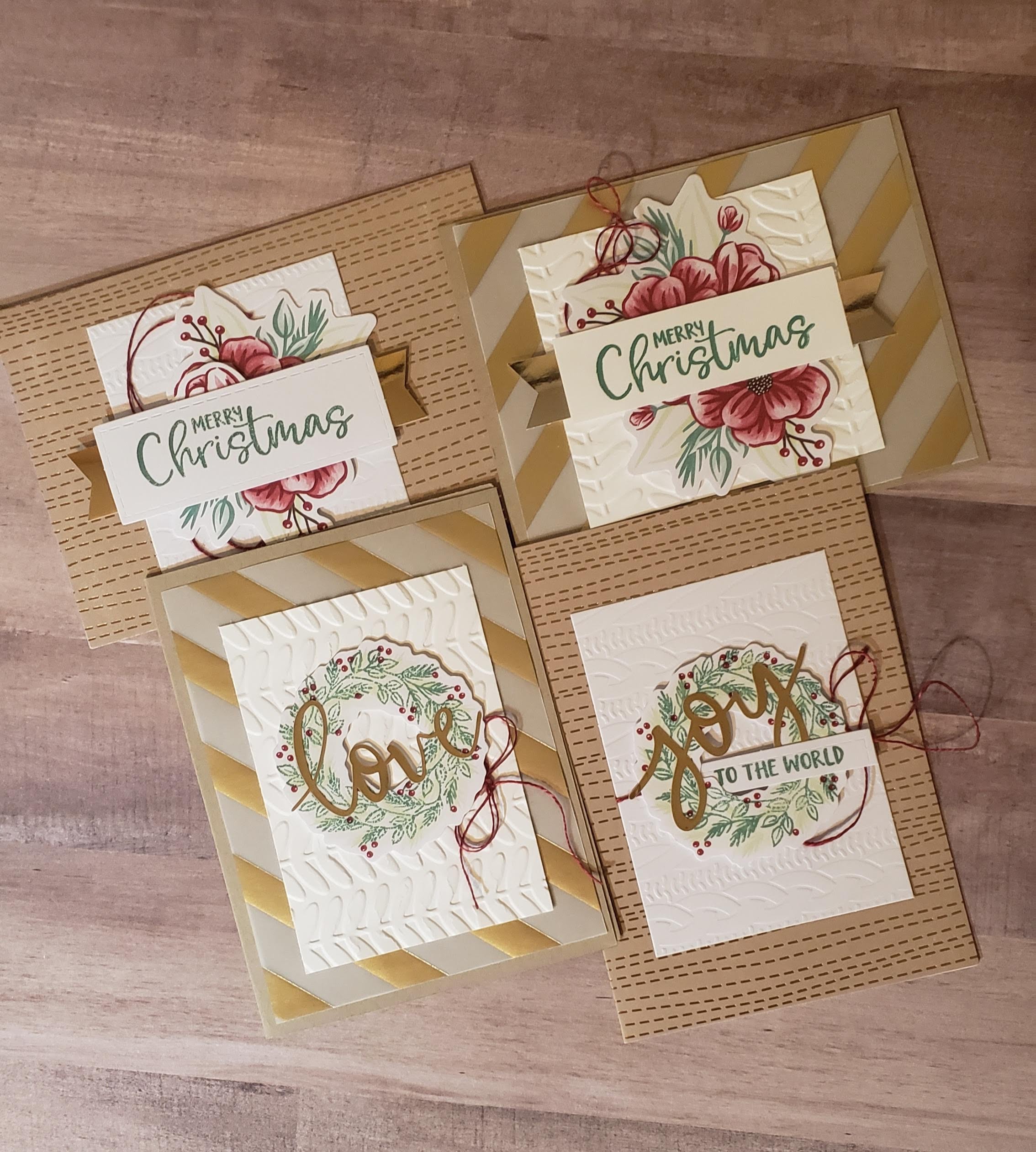 Since I had created some new Christmas cards for this year, I pulled out my box of leftover Christmas cards to see what was in there. I had totally forgotten I had made 10 cards from a Paper Pumpkin kit from 2020. The kit created eight cards, but I had enough images left over to create two more. I pulled out the retired Vellum with gold foil stripes on it and this worked out perfectly. I now have a few more to add to my total and am on track to create 30 Christmas cards a month through November. They won’t all be the same design but I’ll try to use as many images from a single stamp set as I can. Keep stampin’ and scrappin’!