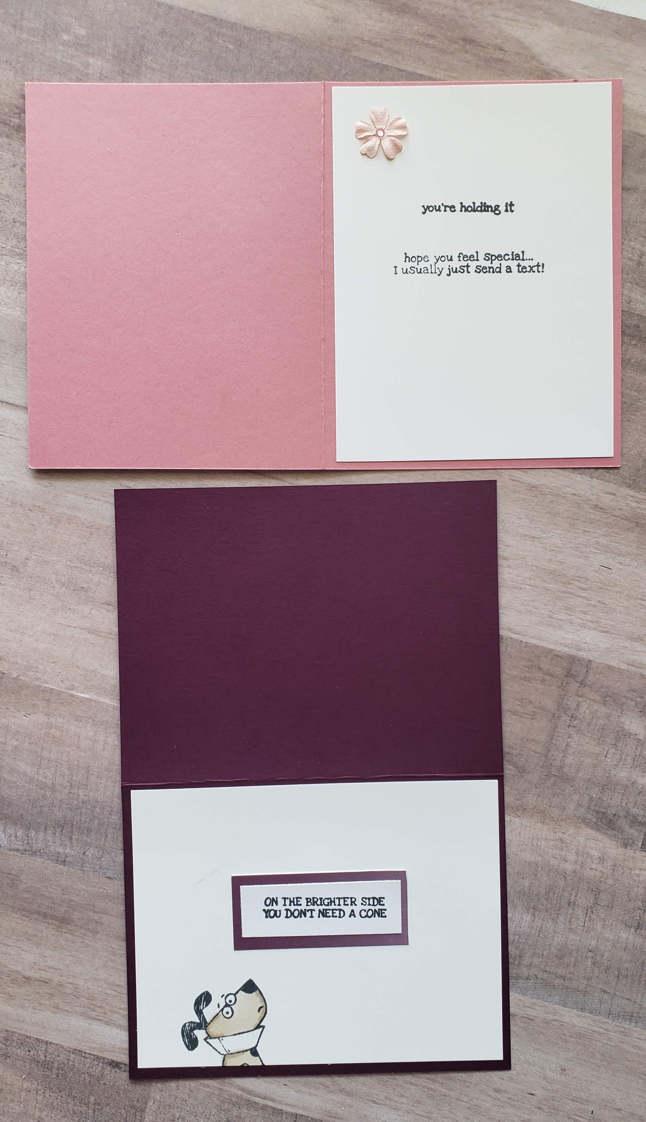 So you’ll still be seeing my crafty stuff here on my blog, but a lot more of the other things I’m also working on other than just cards and Stampin’ Up!. Before we get to some of that, though, here is the inside of my cards.