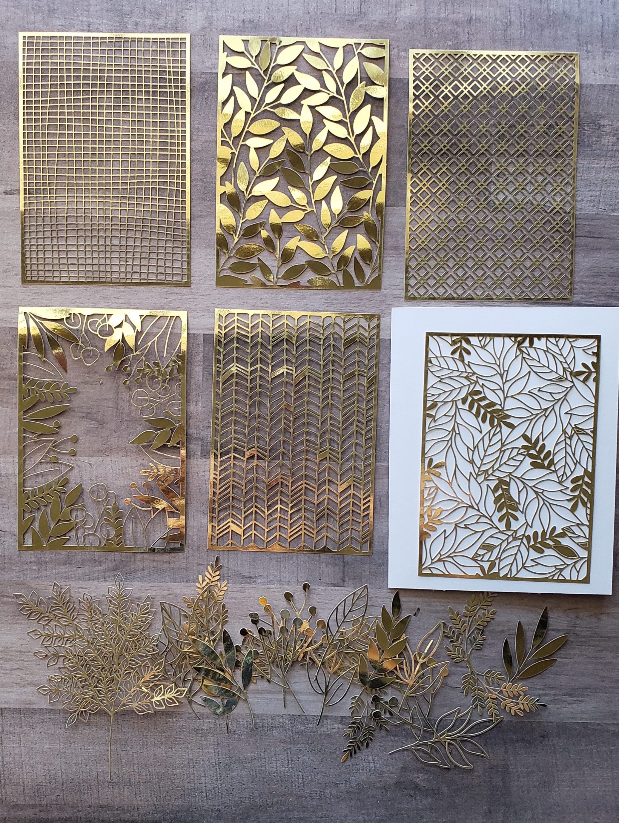 Well, I guess I forgot about my Part 2 of my Forever Gold paper. So here is a quick rundown of how I used the rest of the foil designs shown above. I must admit that several of these were stolen from talented gals on Pinterest.