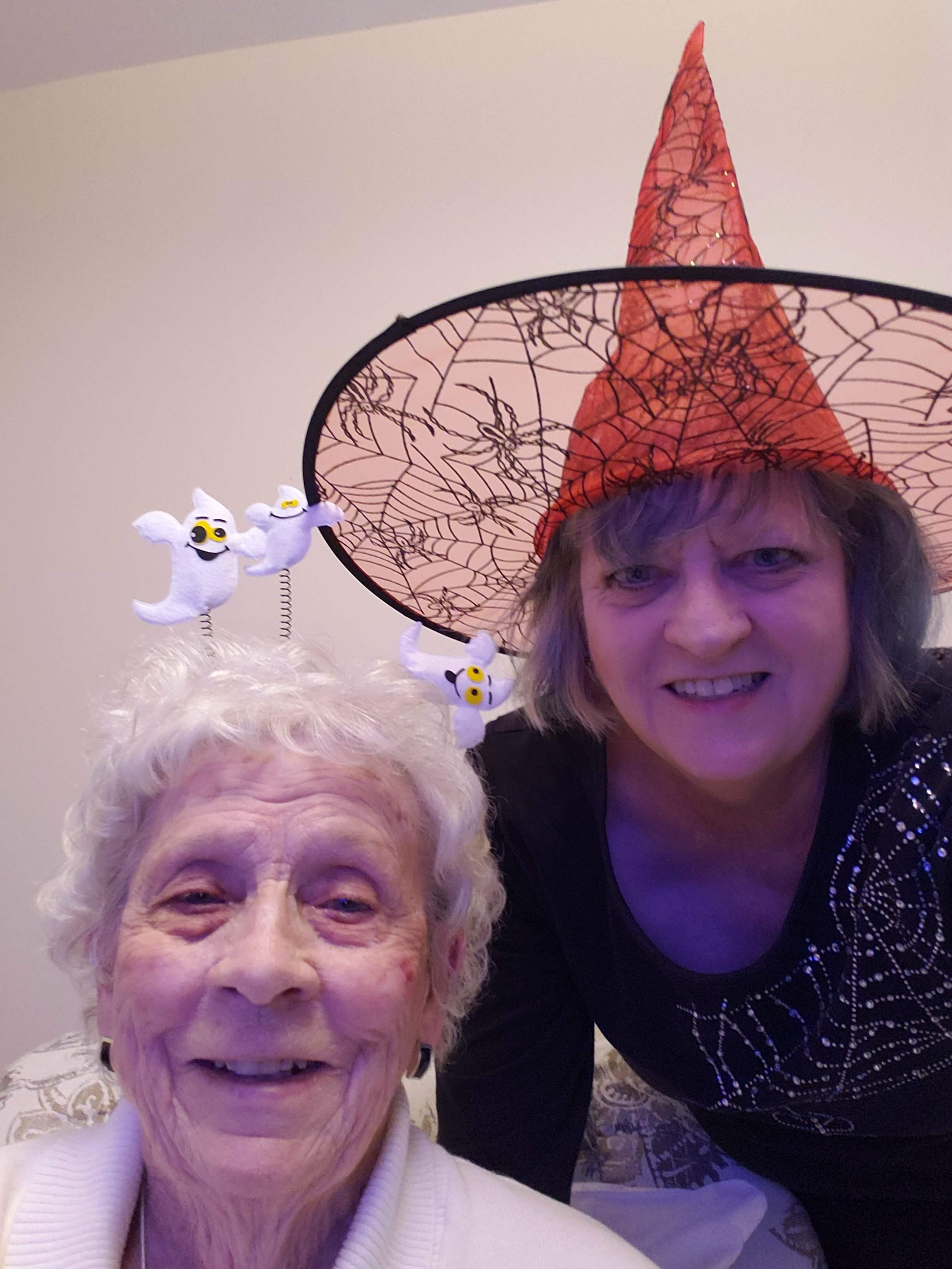 By the way, Happy Halloween! Just a photo of my mom and me at the Halloween celebration at her facility for Trick or Treating. Preschoolers dropped by and sang a few songs and then went Trick or Treating at all of the residents’ doors. It was a hoot!