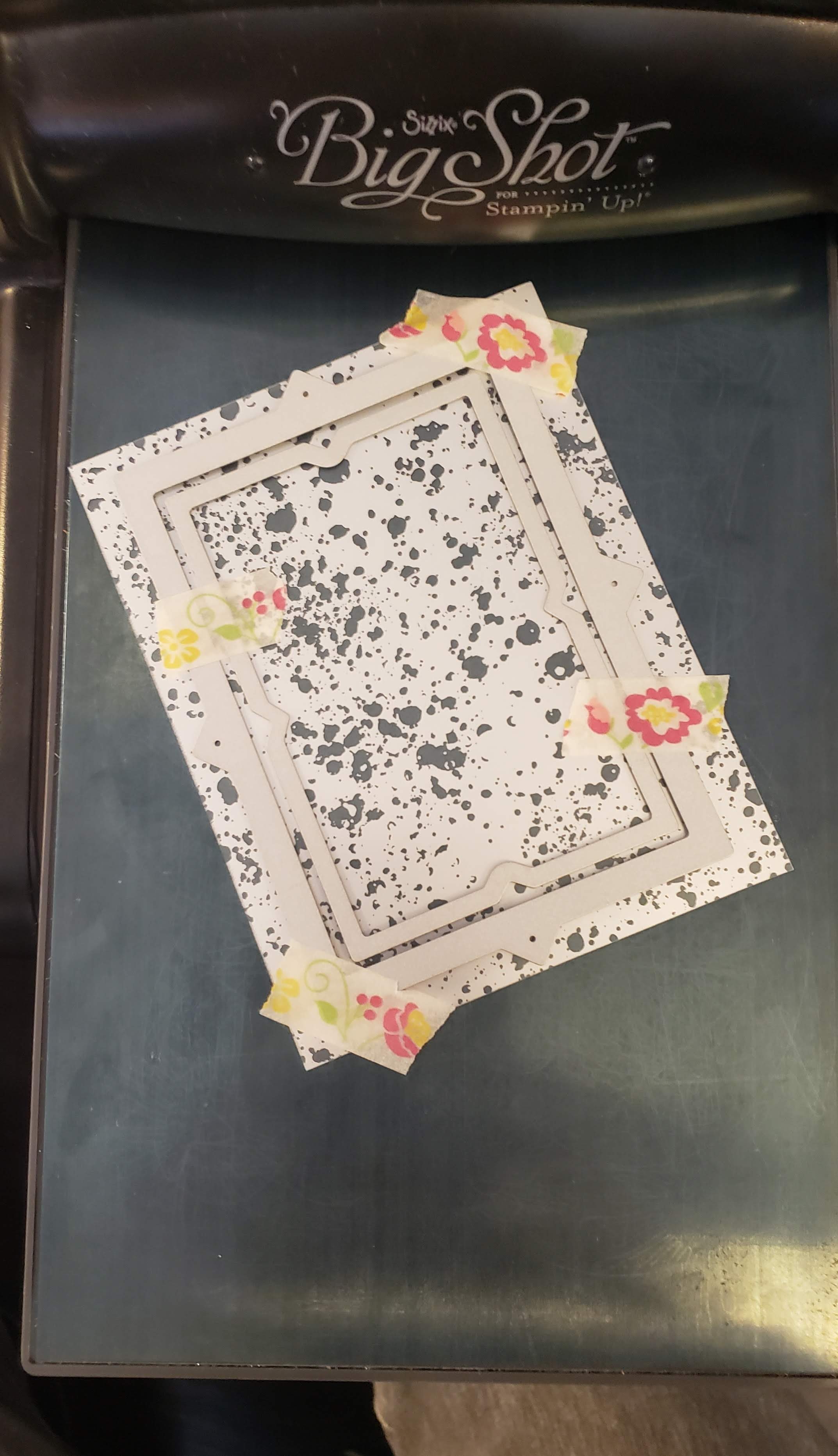 I just thought I would show you how I made my frame with the dies. I used the metallic plate and then just washi tape to hold it in place.