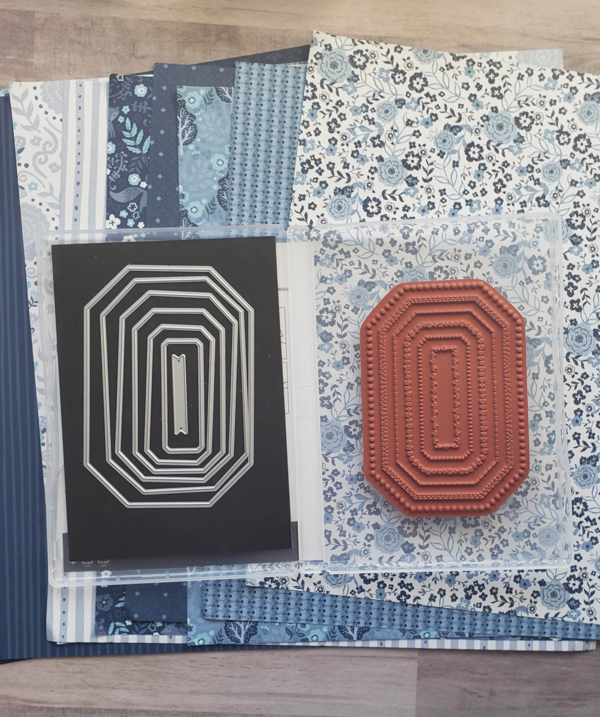Even though I love everything in the new 2023-2024 Annual Catalog, as a demonstrator, I could choose to pre-order from only a few select products in the new catalog. I chose the Countryside Inn Suite Collection. I absolutely adore these beautiful blue papers and the stamp set and embossing folder are different from what I already have.