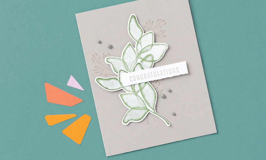 This was the card I created using their sample as a guideline. I took the leaf image from the retired Rose Wonder stamp set and stamped the image on Basic White cardstock and vellum. I cut out the image with the coordinating die.