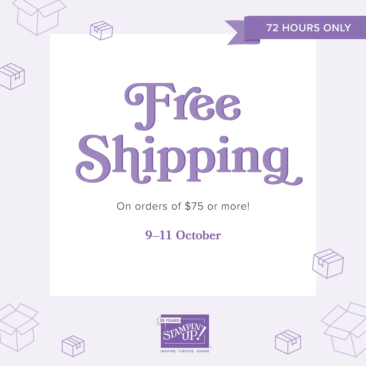 Time for you to stock up and save on your favorite Stampin’ Up! products! What’s the big occasion? From 9–11 October, Stampin’ Up! is offering FREE shipping on orders subtotaling $75 or more. This incredible deal lasts for three days only, so don’t miss out!