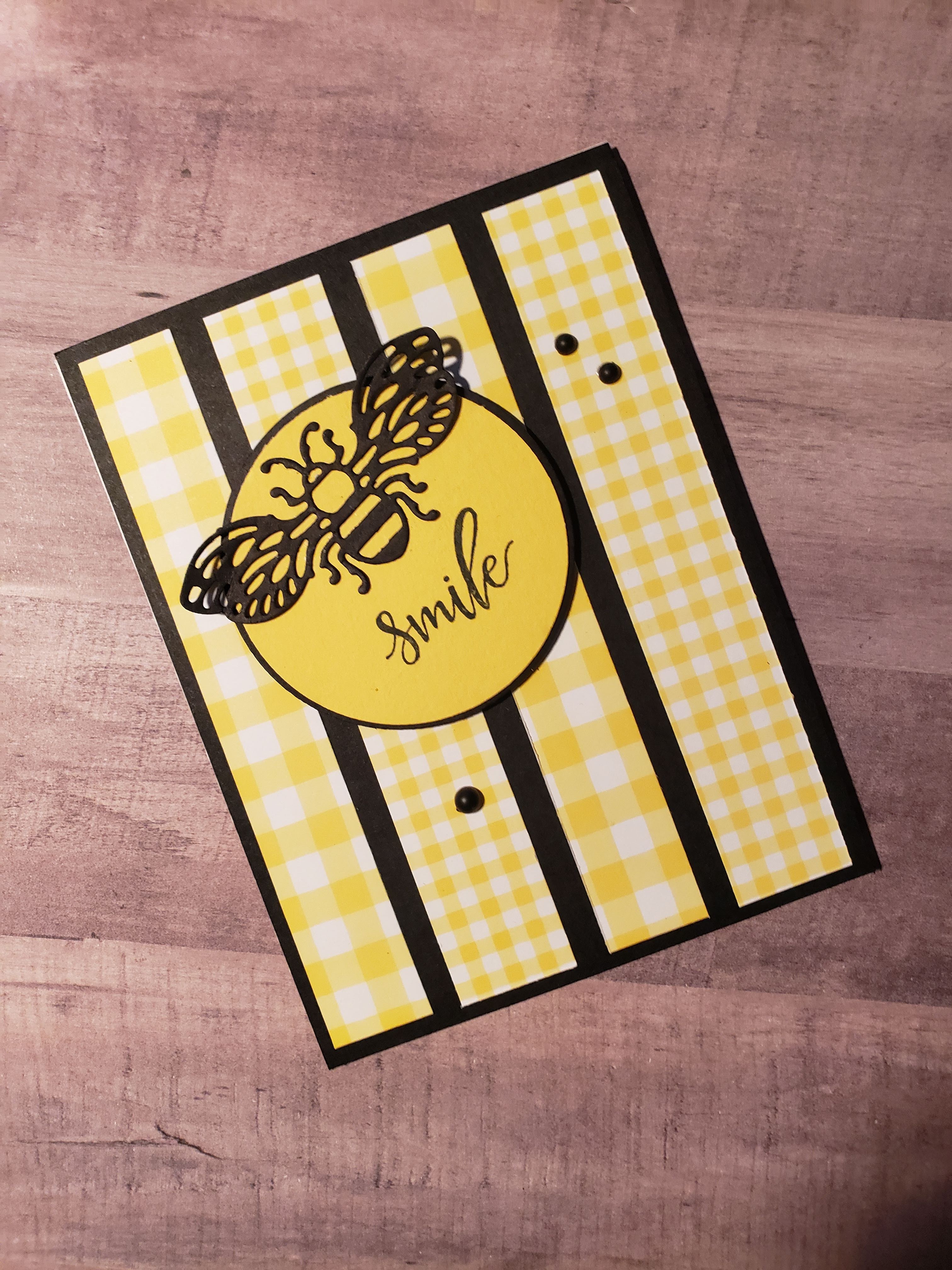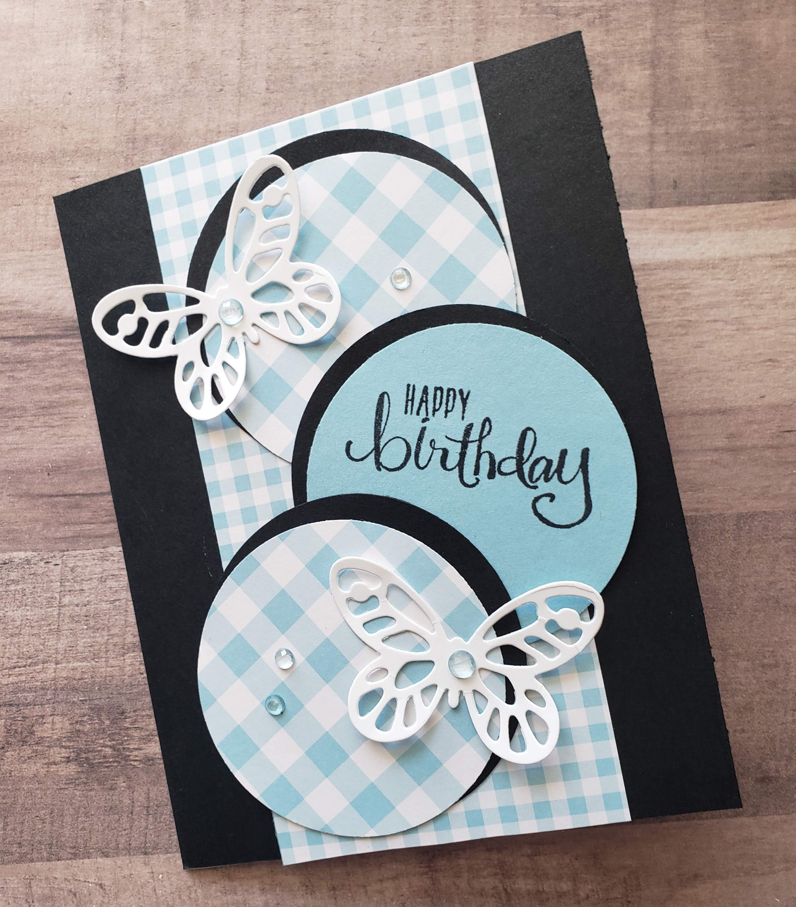 And for this last card, I decided I had enough strips and went to my circle punches for more than just the sentiment. It felt so good to use up the gingham and create cards using my little box of fun.